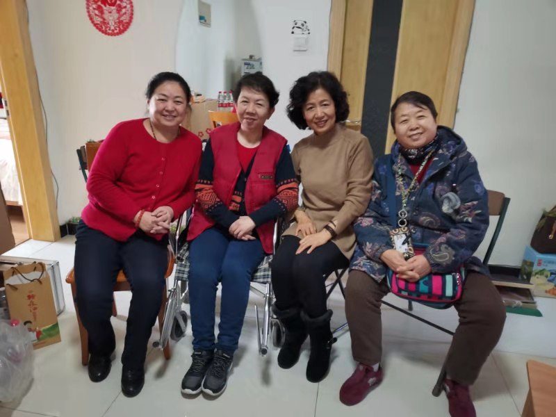 2020年1月9日,我们支部陆淑英,张爱珍,史卉三位党员,带着党组织的关怀,来到了闵庄瀚河园小区,看望了大病初愈身体正在恢复中的接待公司职工党员杨怡同志,我们的到来让杨怡高兴不已,看到杨怡脸色比去年好很多,人也长胖了一些,我们也感到欣慰。杨怡向我们汇报了她坚持用左手写日记的过程,(因为右手生病后很不方便)还高兴的告诉我们:他儿子给她买日记本,支持她写日记,儿子还学着为出门不方便的妈妈理发。我们也和她说一些支部活动的事,我们说的一切,她都是那么兴致勃勃的听着。时间过得很快,离别时我们在一起合了影,并约定再相聚。