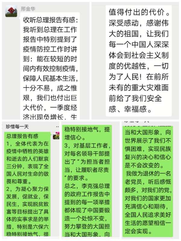 开幕式结束后好多党员还发表了自己对李克强总理所作的《政府工作报告》的感想。很多党员都表示李克强总理的报告简明扼要,重点突出,通篇进取,句句务实,通民意,顾民心。
