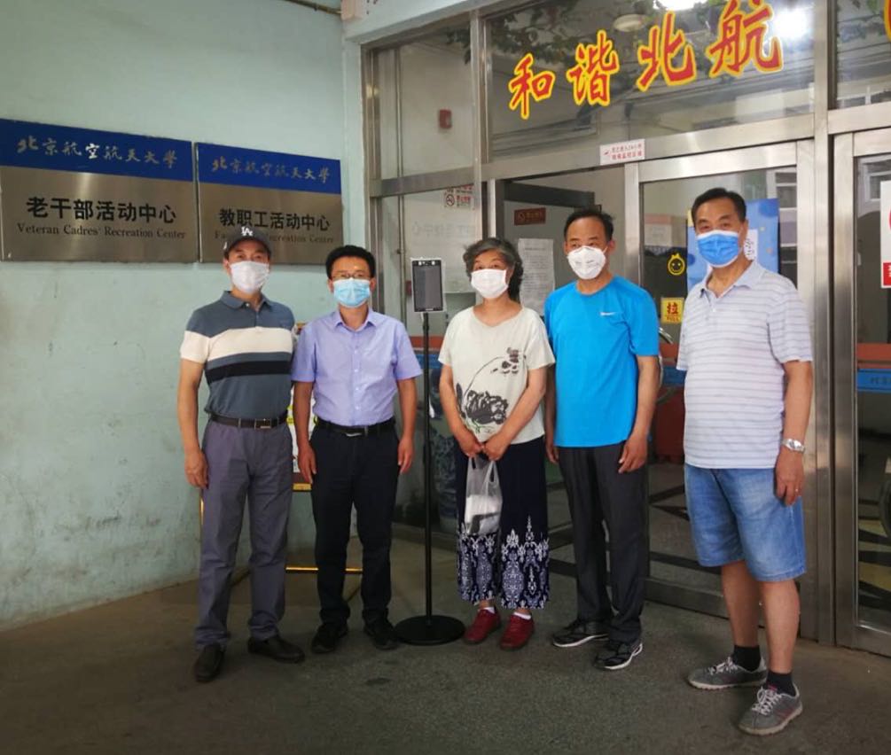 汤海鹰在捐赠仪式上说:“看到北航365英国上市公司工作处在疫情期间为老同志做了大量的关心关爱工作,看到我们党支部书记赵令蓉老师天天为解决支部成员的困难忙前忙后,觉得自己也应该为抗击疫情做一些力所能及的事情。选择捐赠人脸识别测温一体机可以帮助提高思源楼的防疫效率和准确率,是我应该做的。”