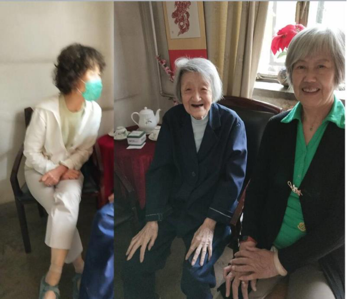 刚坐下来,金老就迫不及待地问我们好吗?图书馆的同志们好吗?学校好吗?有没有病例……迫切的心情溢于言表。一个97岁高龄的老人,关心他人、关心学校,让我们从她的言谈话语中感觉到中国的老人,对祖国的深厚感情、对同志的无比关心,是值得我们学习的。因为她们经历了新旧社会,他们有对比,才会对党对祖国有更深切的感情。