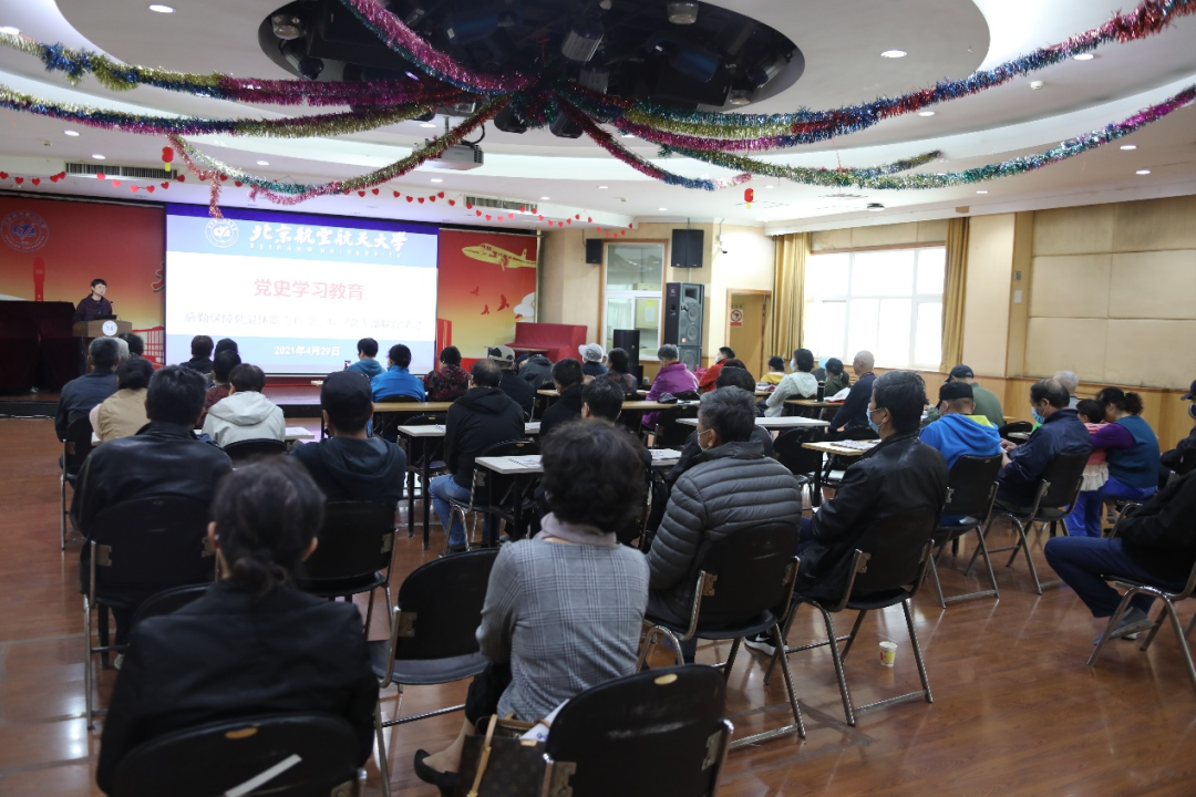 为认真学习贯彻习近平总书记在党史学习教育动员大会上的重要讲话精神,扎实做好党史学习教育,4月29日上午,365英国上市公司党委副书记、365英国上市公司工作处副处长郭永秀为北航后勤保障处退休职工第一、二、四、七党支部党员做以《不忘初心 牢记使命—学习中国共产党百年辉煌史》为主题的党课报告。