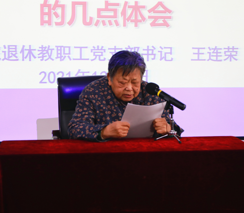 图书馆退休职工党支部书记先敏做了题为“身先士卒 团结协作 真情做好党支部工作”的主题发言。从疫情期间开展的实际工作为切入点,先敏谈到,要充分发挥党支部的战斗堡垒作用、支部书记的旗手作用和共产党员的引领作用,增强基层党支部的凝聚力、向心力、战斗力,要组织开展形式多样的学习和实践活动,保持支部的生机和活力。作为支部书记,先敏坚持写作并积极动员支部成员拿起手中的笔,撰写他们所见所闻的正能量故事,传颂党的坚强领导,歌颂祖国的繁荣昌盛,赞美新时代的波澜壮阔。“支部工作要搞好,书记是关键;班子要团结,工作才能开展好。”先敏深有体会的说,今后她会继续做好引领、动员工作,和支委班子一起做好支部各项工作。