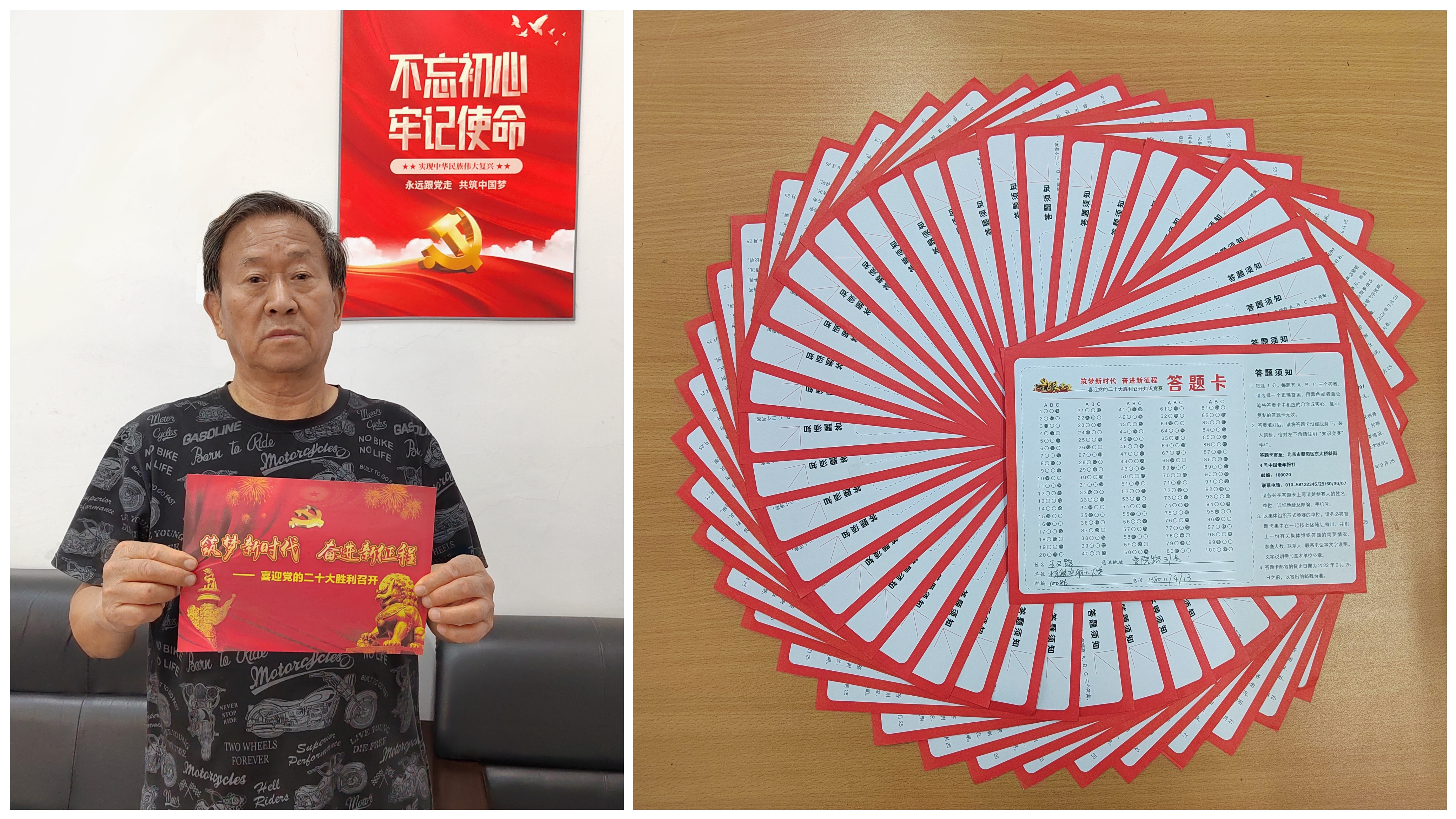 北航附小退休教职工党支部书记李志敏讲到:“老同志们关心粮食和蔬菜,也关心世界与未来。虽然我们退休了,但我们的学习热情不减,向党组织靠拢的决心不变。答题前,我们都认真学习知识竞赛相关文献内容,重温习近平总书记的重要讲话精神,以饱满的热情和昂扬的状态迎接党的二十大胜利召开。”