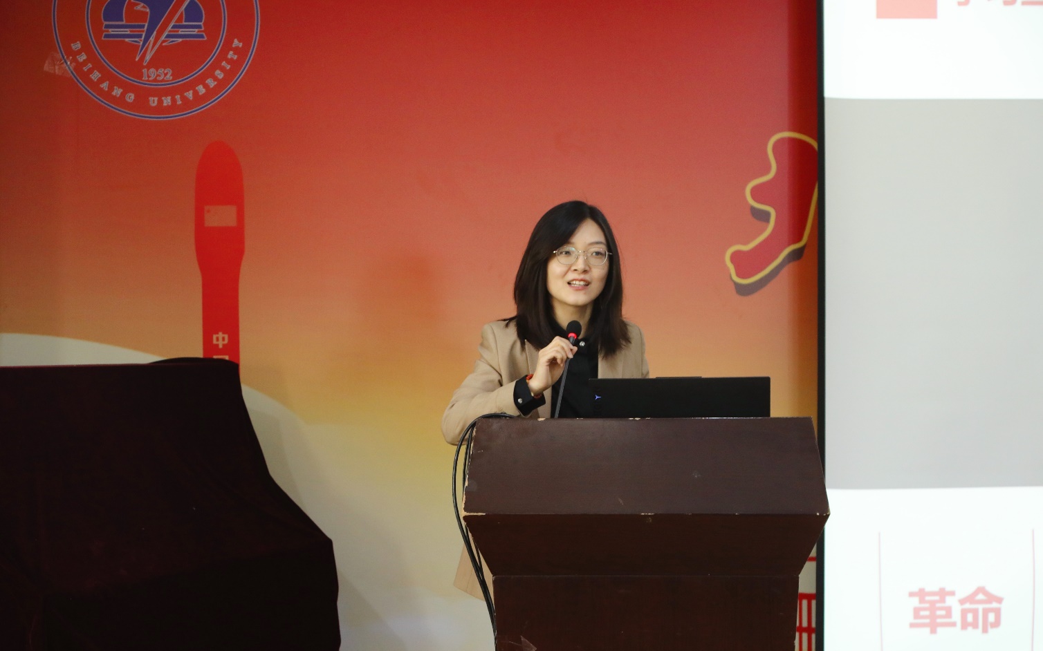 接着,付老师以时间为主轴,从百年党史的革命、建设、改革、复兴四个历史发展时期,讲述了建国大业中沂蒙人民与解放军的军民鱼水关系;兴国大业中“两弹一星”事业背后战士和人民的默默付出;富国大业中小岗村拉开农村改革序幕的志气;强国大业中习近平总书记对南水北调移民村的牵挂。党在不同的历史时期,它的任务其实都是以人民为中心的,付老师激情的总结到,不同历史时期都刻有“人民”的身影和印记,不同角色的人民在不同的岗位上奉献、牺牲、奋斗与拼搏着。