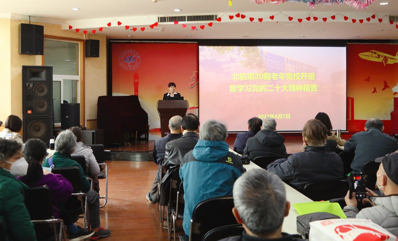 4月7日上午,在雄壮的国歌声中,北航第20期老年党校如期开班。老年党校首场报告邀请央视《百家讲坛》主讲人、北航马克思主义学院付丽莎副教授做主题为《百年党史,人民写就——党的二十大报告之人民视角》的讲座。