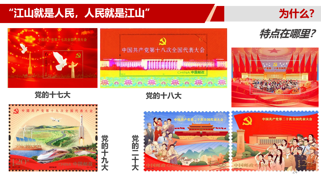 讲座中,付老师通过发行的历次党代会邮票画面,解读了人民性是马克思主义的本质属性,党的理论是来自人民、为了人民、造福人民的理论。通过历次党代会的大会主题的对比,展现了我们党永远不变的中国特色社会主义的旗帜方向与道路以及不断努力变化着的阶段性奋斗目标,现在已开启第二个百年奋斗目标的新征程——全面建设社会主义现代化国家奋发迈进。