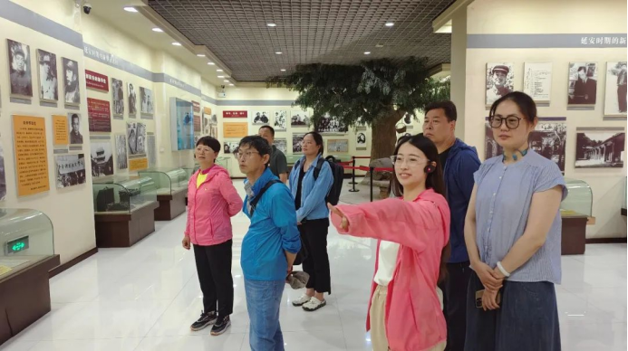 进入南泥湾大生产纪念馆,大家在讲解员的带领下,观看展板上记录大生产火热场景的老照片,浏览展柜里锄头、纺车等红军战士们使用过的生产用具,重温那段峥嵘岁月,接受革命教育洗礼。