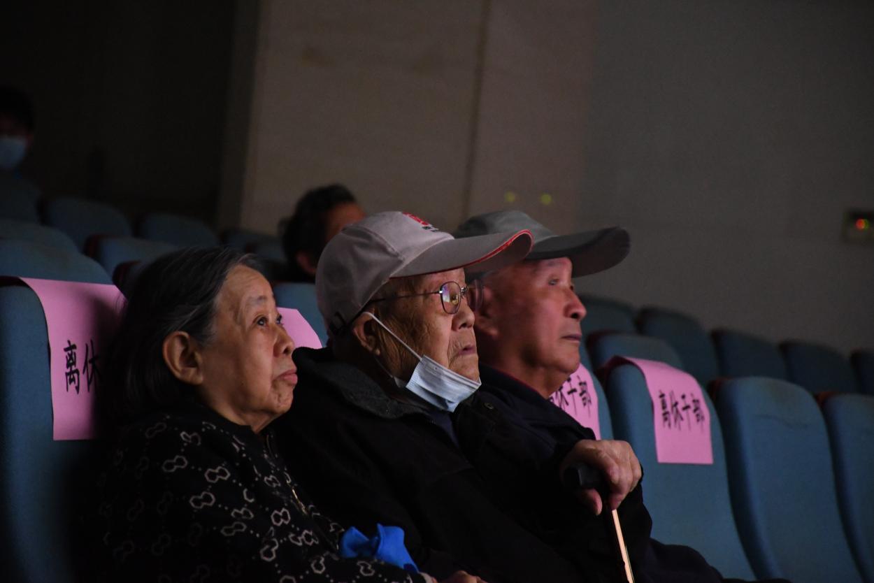 老年党校此次观影特别邀请“中国人民志愿军抗美援朝出国作战70周年”纪念章获得者张华、明玉清,离休干部冯士安、李凤存到场观影。94岁的张华,曾于1950年赴朝作战,期间经历多次重大战役,1951年在第四次、第五次战役中负伤,那是一段比电影更加残酷的经历。91岁的明玉清,1950年选入空降兵,1953年参加抗美援朝作战,其所在的空军参战部队,击落敌机330架,击伤95架,在敌我力量悬殊的情况下,展现了志愿军英勇无畏、顽强拼搏的斗争精神。