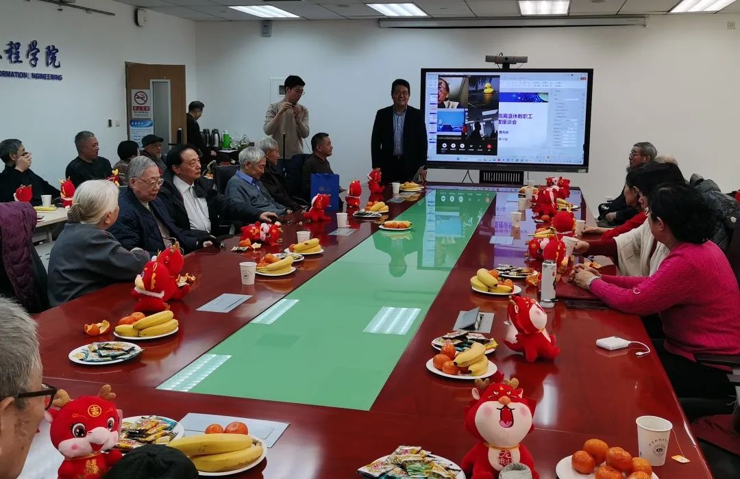 1月15日下午,电子信息工程学院一年一度的新年座谈会正在火热进行中,学院几代教职工欢聚一堂,共同回顾过往一年的成就,展望崭新一年的征程。学校的老领导、原校长沈士团及夫人莅临座谈会,电子学院退休教职工两个党支部书记李署坚、马俊华、全体支委,以及“三老”协会分会的成员参会。座谈会由学院党委书记徐亚军主持。