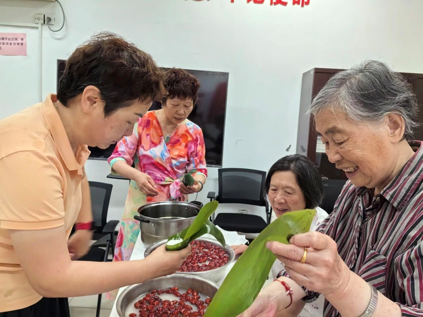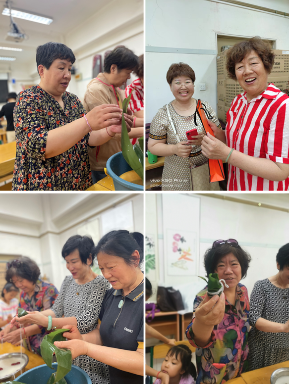 6月7日,思源楼一层党员活动室,幼儿园退休支部以“淡淡粽叶香,浓浓端午情”为主题,组织开展包粽子活动,丰富节日体验,增进退休老师们之间的互动交流。