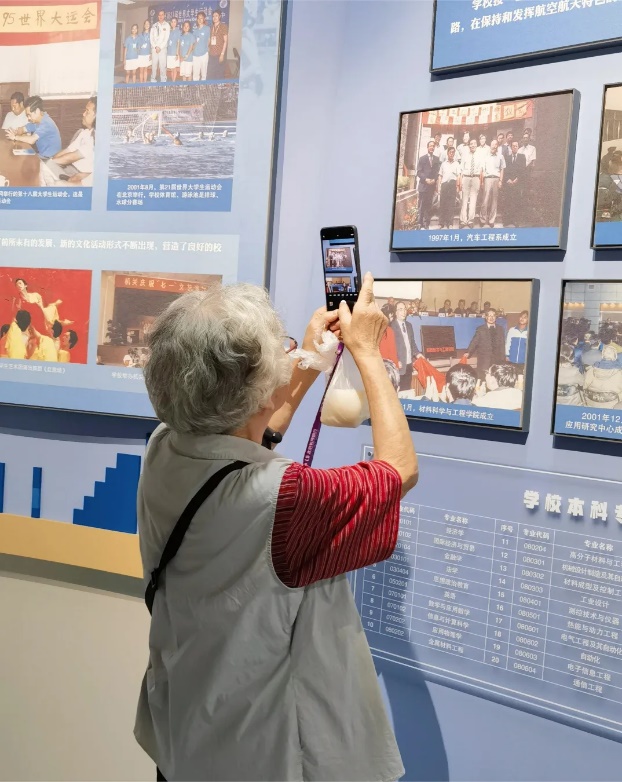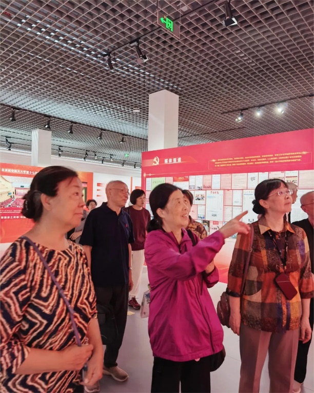 展览通过发展成就回顾、历史使命和发展战略、党代会掠影、今后五年的主要任务、媒体报道等板块,全面梳理了党代会成果,生动展示了学校各项事业的新成就、新气象、新规划。党员同志们沿着展出板块认真观看,深入交流,感悟良多。有60年党龄的老党员袁东晖谈到:“此次主题党日活动,让我感到非常振奋。作为老北航人,我为学校取得的各项成绩感到骄傲,我相信北航将以党的二十大以及二十届三中全会精神为指导,砥砺前行,再创佳绩。”