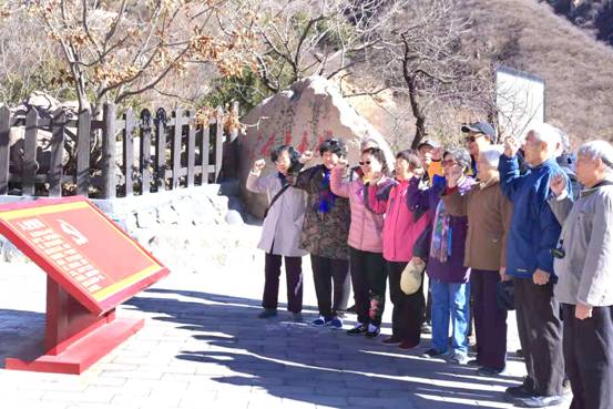 2018年10月29日天空晴朗,北航无人系统研究院退休党支部联合管理小组组织老同志赴怀柔庙上村第一党支部参观学习,并在庙上村“第一党支部”石碑前照相留念。