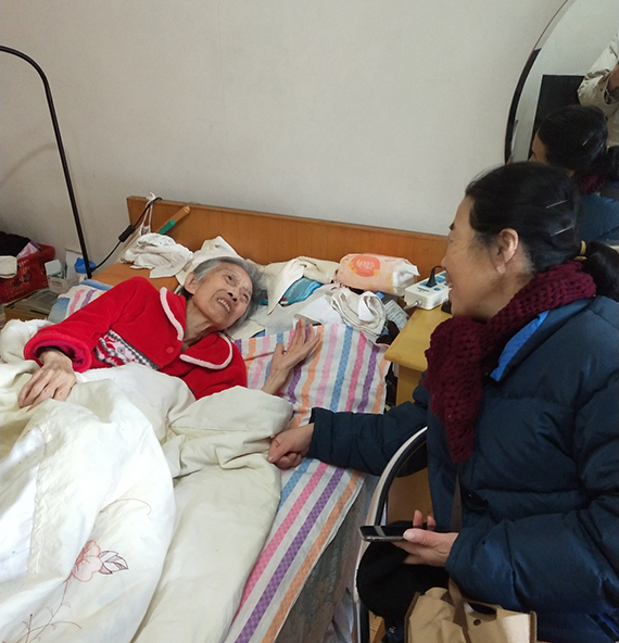 原人事处胡庆瑶同志体弱卧床,看到大家来看她,心里特别高兴,一直有说不完的话,我们临走时,老人家热泪盈眶,坚持下床送行,虽然已经力不从心了,但却表明自己的一片心迹。几年来,我们支部坚持走访到家,问寒问暖与老前辈聊一聊,得到了一致好评,胡老师女儿表示:谢谢两位书记探望自己母亲,尤其送来的慰问品,母亲也很喜欢。谢谢组织对老同志的关爱!
