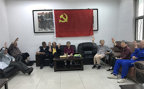 会后全体党员在党旗下合影留念。