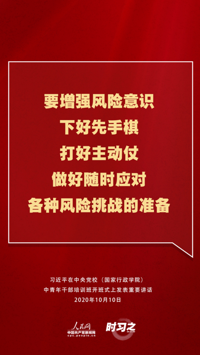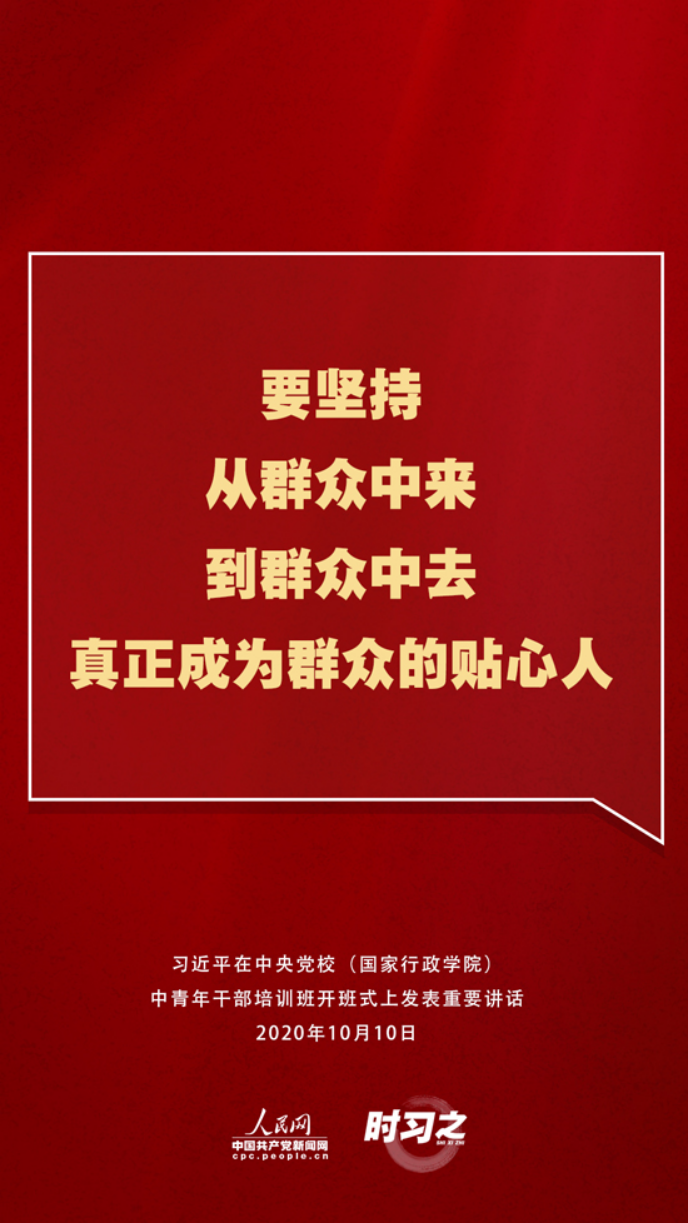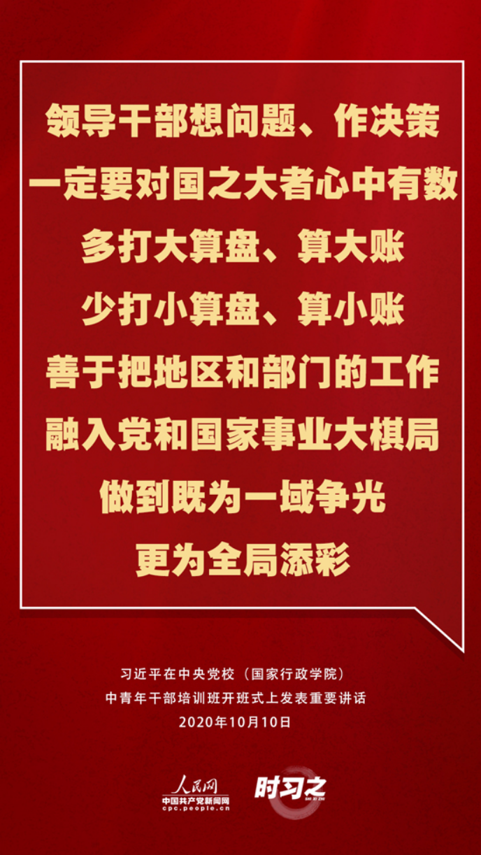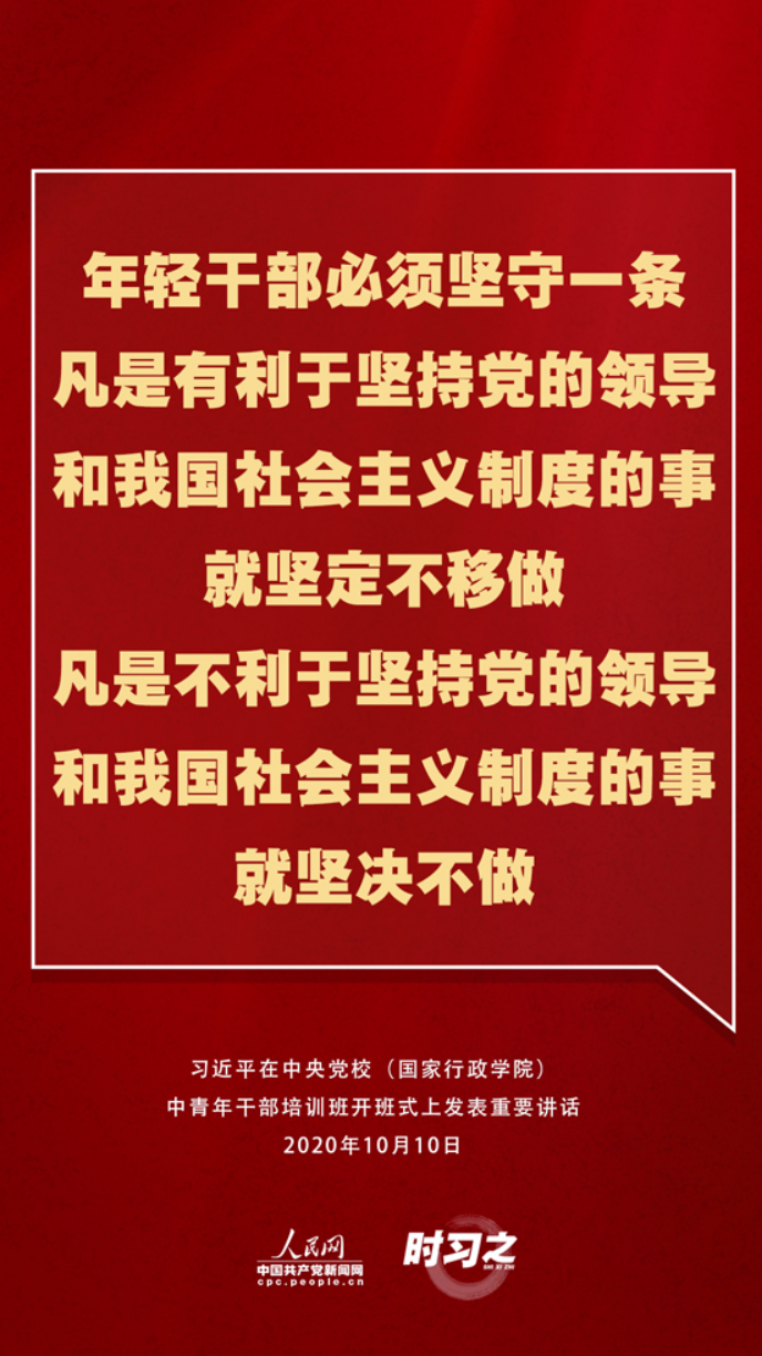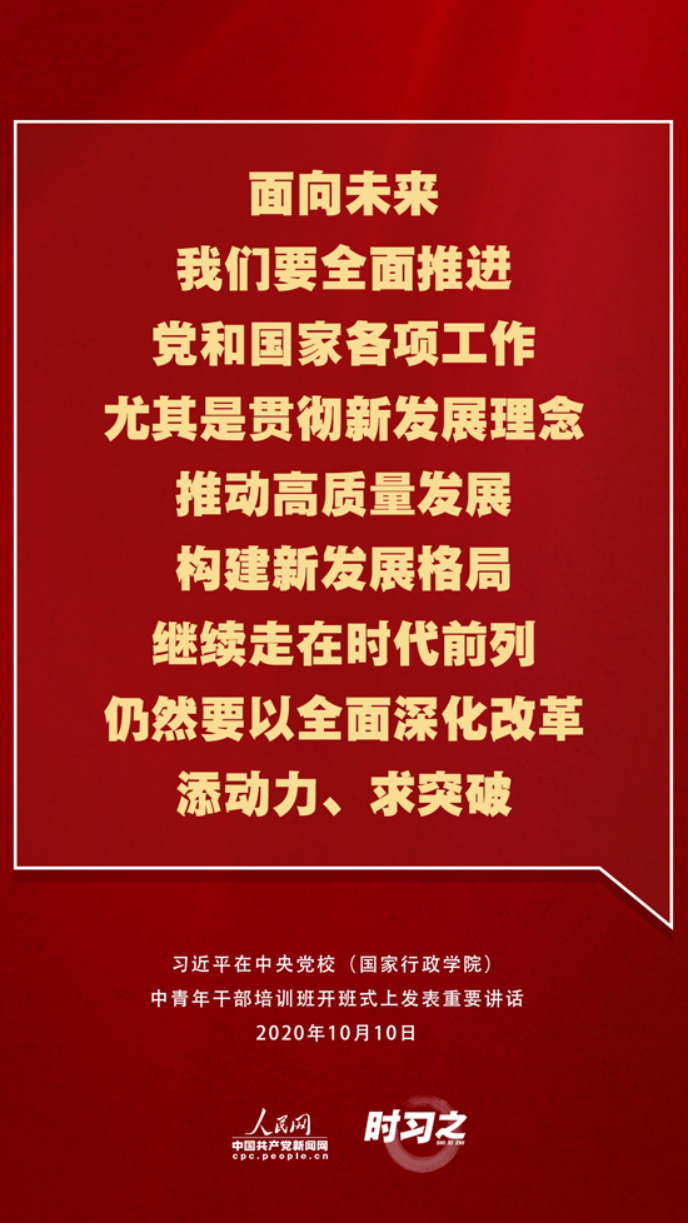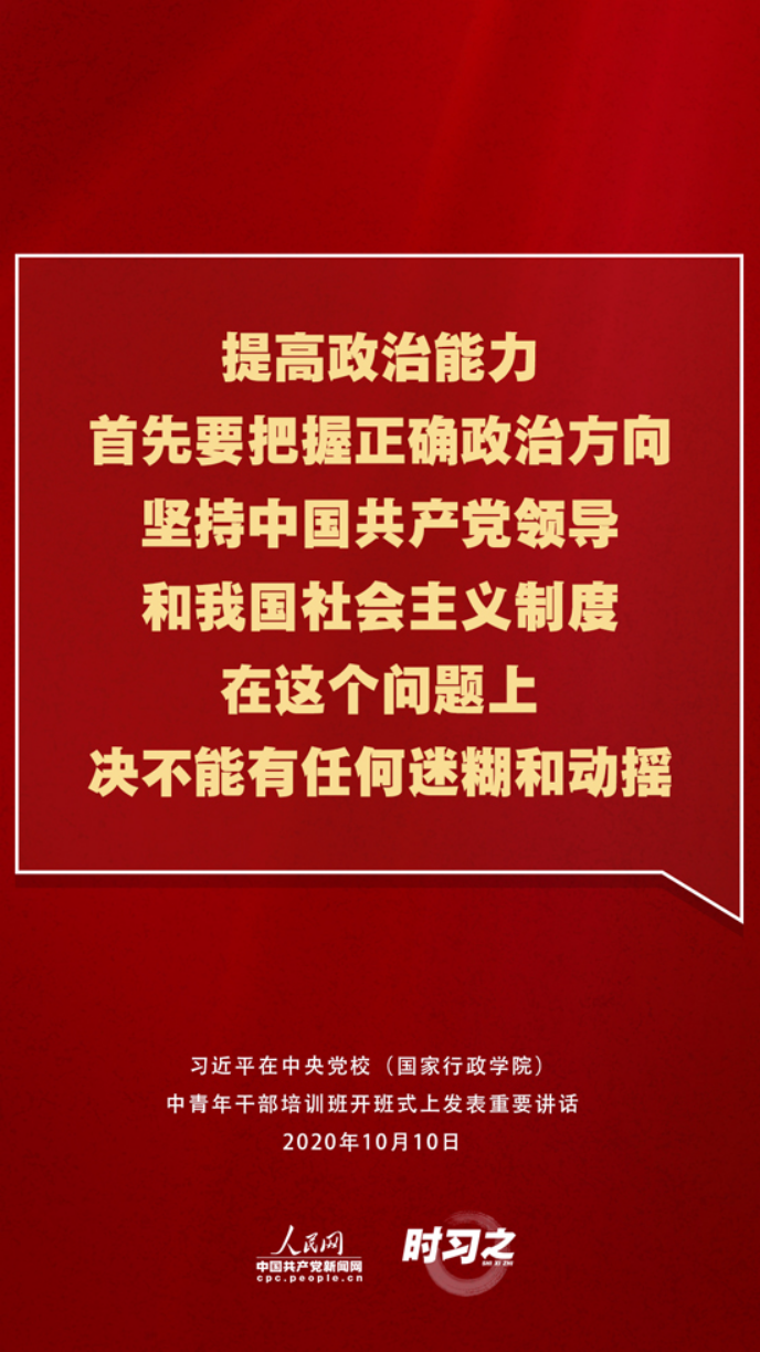 【编者按】10月10日上午,2020年秋季学期中央党校(国家行政学院)中青年干部培训班在中央党校开班。中共中央总书记、国家主席、中央军委主席习近平在开班式上发表重要讲话。