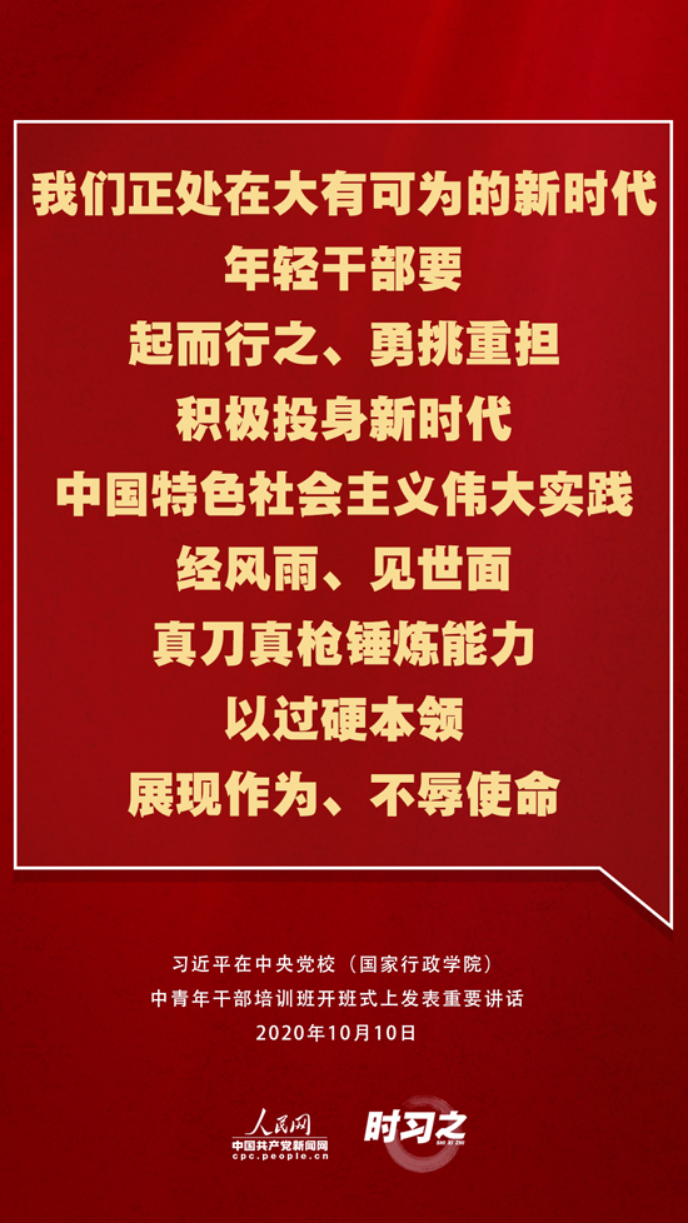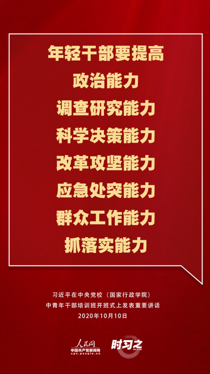 在此次开班式上,习近平总书记从多个方面对年轻干部提出了新要求,人民网·中国共产党新闻网“时习之”栏目为您梳理。