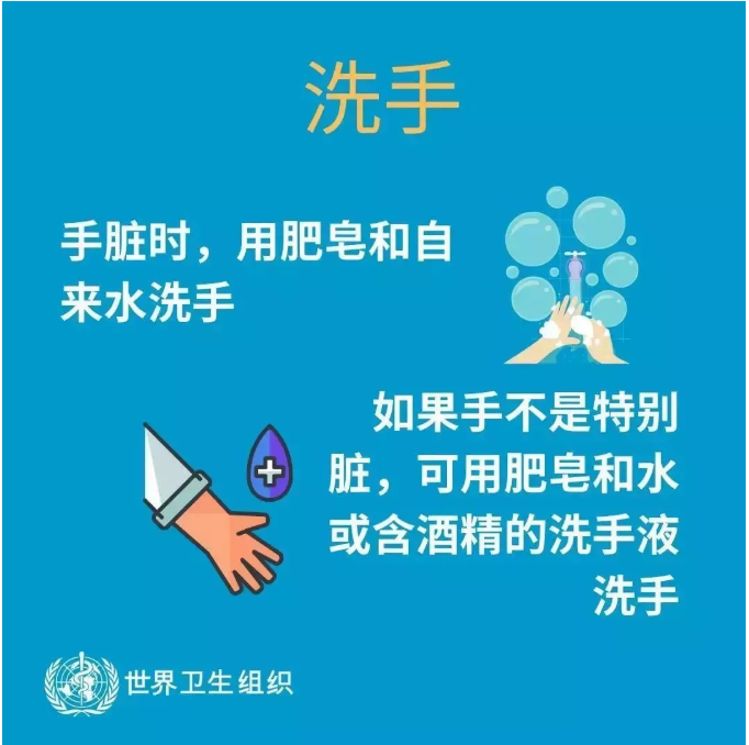 2.保持手卫生。咳嗽、饭前、便后、接触或处理动物排泄物后,要用流水洗手,或者使用含有酒精成分的免洗洗手液。