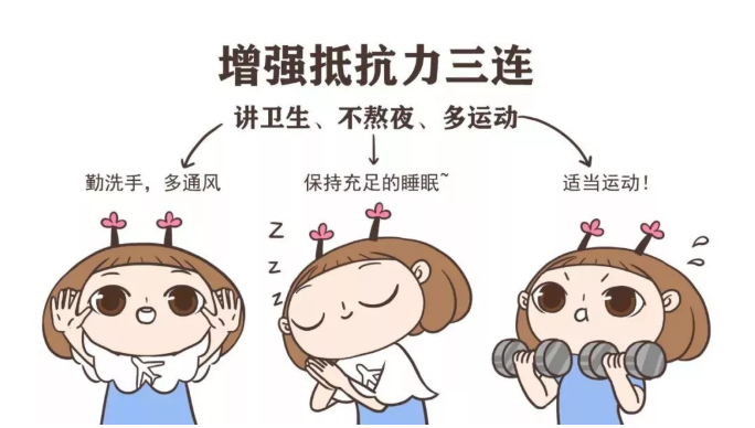 四、杜绝带病活动如有发烧、咳嗽等呼吸道感染的症状,居家休息,减少外出和旅行,天气良好时居室多通风,接触他人请佩戴口罩。要避免带病活动。