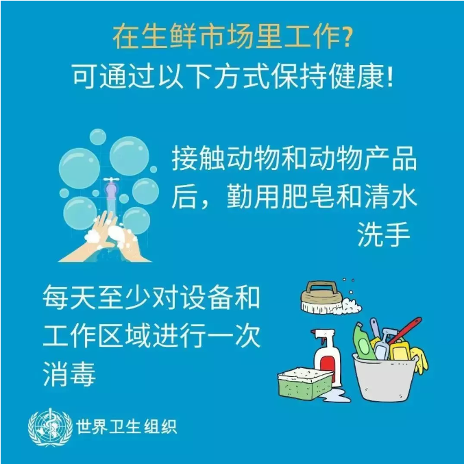 2.避免前往动物农场和屠宰场、活禽动物交易市场或摊位、野生动物栖息地等场所。必须前往时要做好防护。