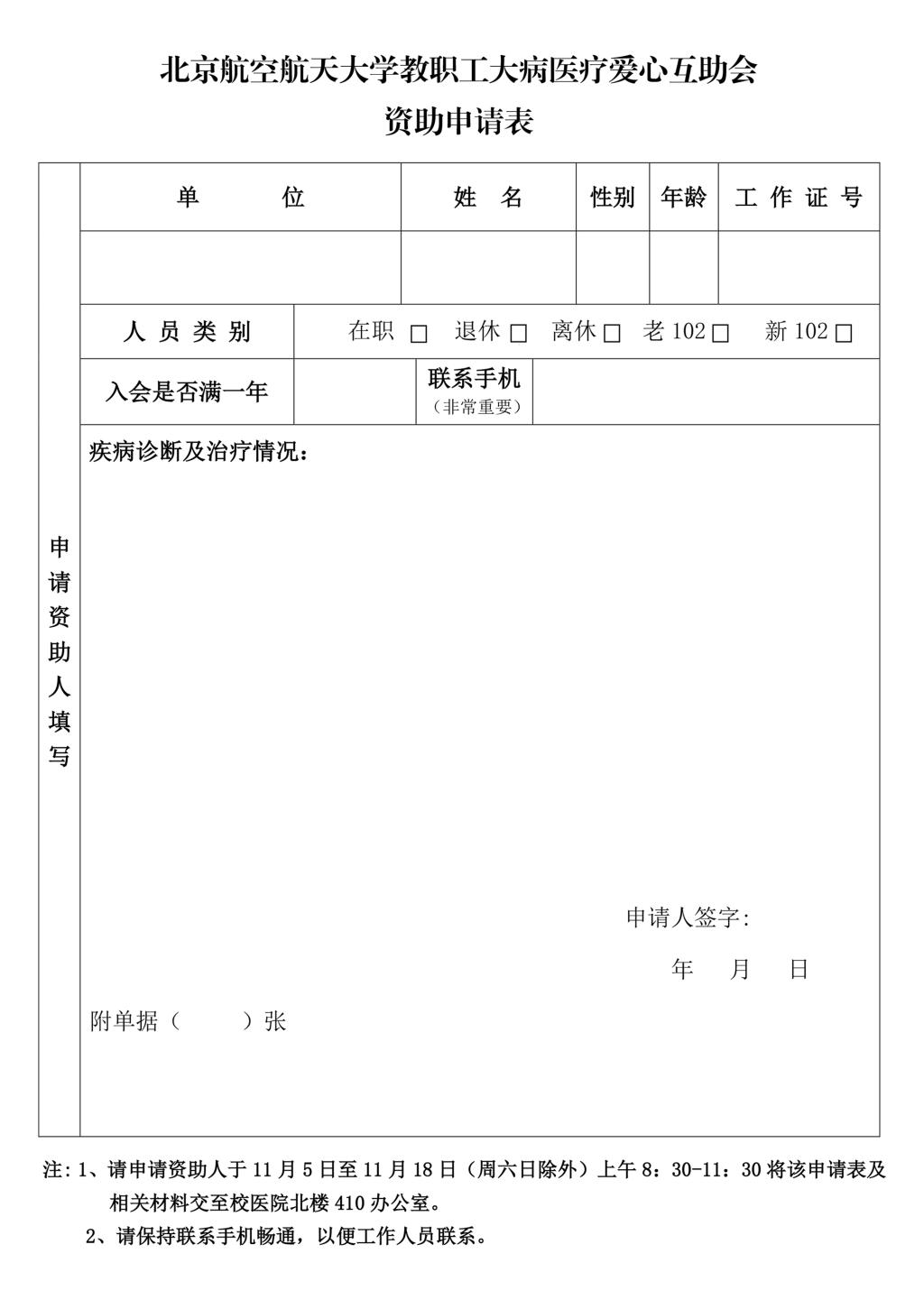 附:北京航空航天大学教职工大病医疗爱心互助会资助申请表