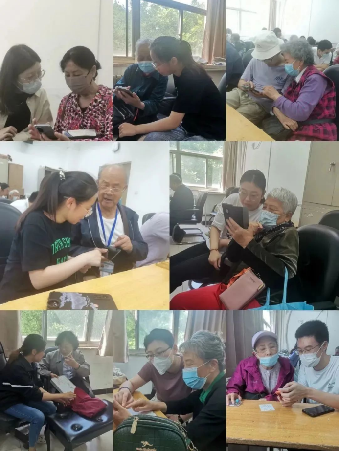 老同志们向志愿者仔细描述了自己在地图导航、日常购物、挂号就医、亲友入校、机票火车票购买、软件安装卸载等生活情境下遇到的手机操作难题。大学生志愿者根据这些问题为老同志们悉心解答,用手机现场演示,更好地帮助老同志理解相应的手机操作步骤。
