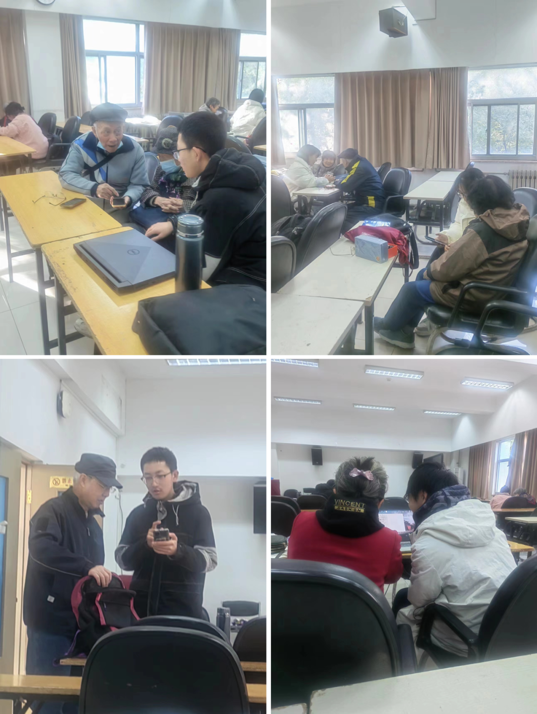 上期培训中,老同志们的学习热情依然高涨,除了咨询生活中常见手机操作问题,如地图导航、日常购物、挂号就医、亲友入校等,还主动学习手机视频剪辑、照片后期处理等新技能。