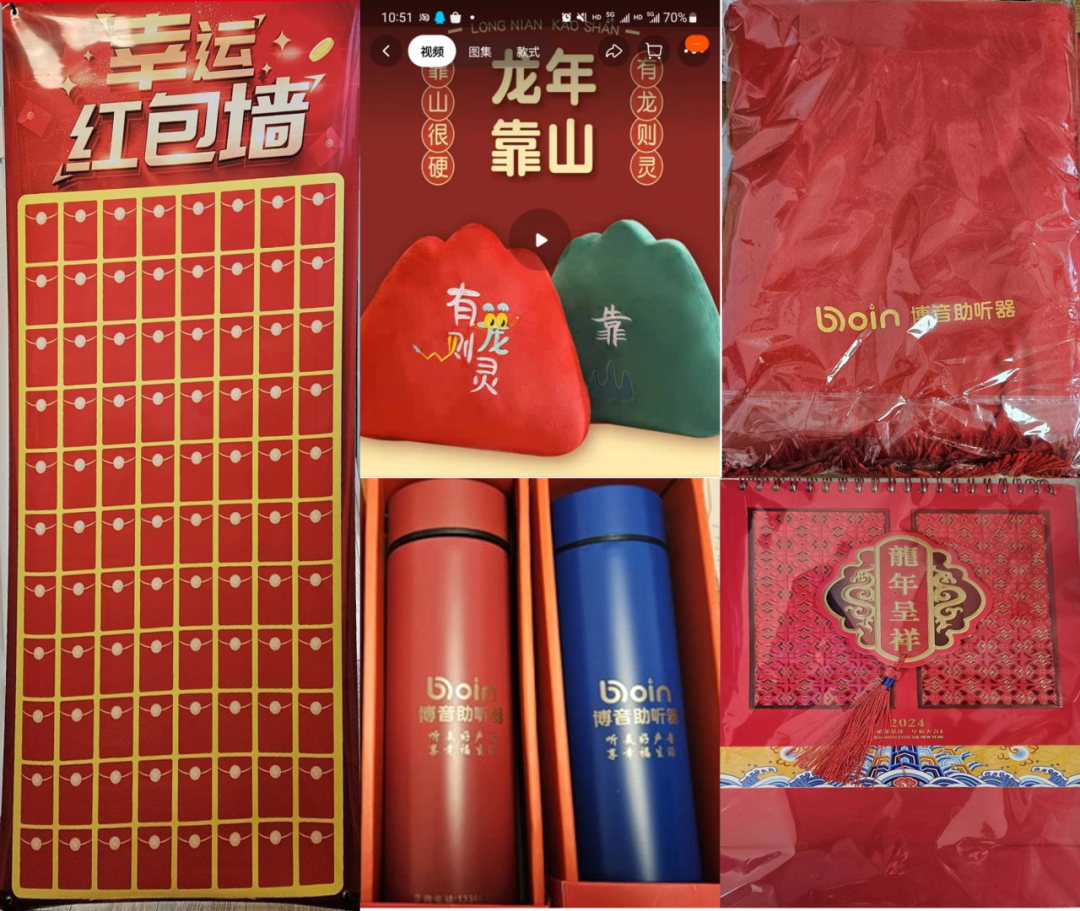 礼品发放:现场将举行抽取红包礼品活动,包含:抱枕、围巾、水杯、台历、发光挖耳勺、春联、农产品等。