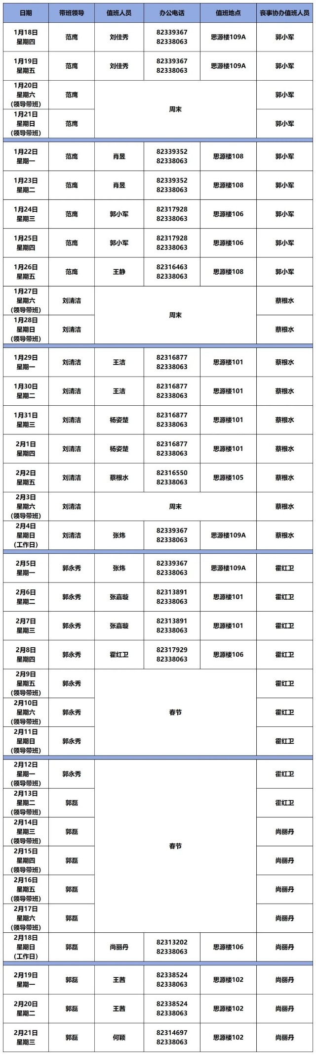 2024年寒假值班表