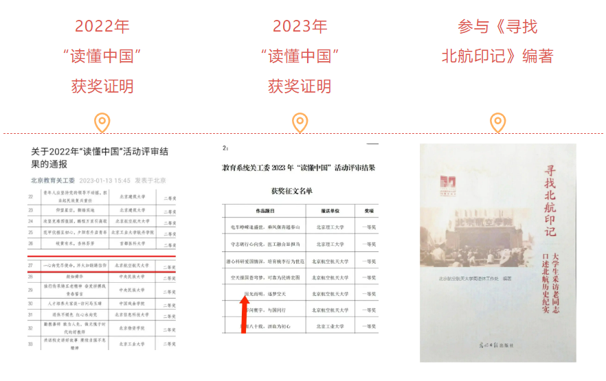 此外,我们每年都会参与教育部关工委组织的 “读懂中国”活动,通过文字和微纪录片展示老前辈们的人生阅历和爱国情怀,记录北航人以“空天报国”为内核的北航精神。