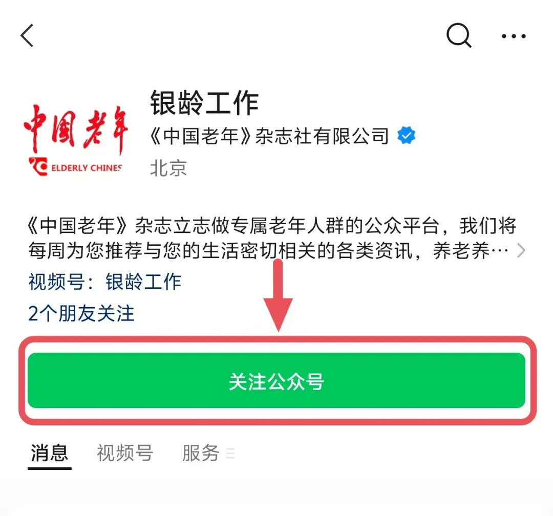 1. 扫描下方二维码或长按下方二维码图片进行公众号识别,关注“银龄工作”公众号