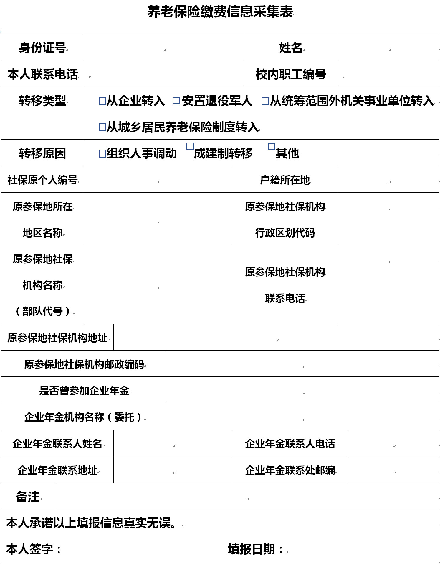 2.已拿到转出地社保经办机构出具的《养老保险参保缴费凭证》人员,凭证中若已包含以上信息,则无需再填写此表。
