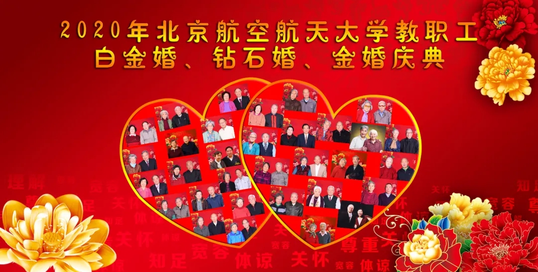 12月30日,作为我校尊老爱老的品牌项目之一,2020年北航教职工白金婚、钻石婚、金婚“云庆典”活动举办,以线上的方式见证90对前辈夫妇们伉俪情深、情比金坚的美好婚姻和生活。