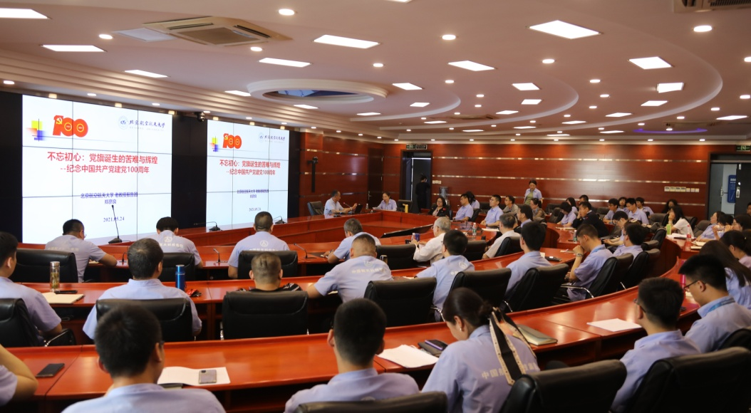 参观结束后,北航老教授报告团成员郑彦良教授应邀为公司中层以上干部和骨干120多人讲了“不忘初心:党旗诞生的苦难与辉煌”的党课。百余幅图片串起的百年党史故事,给新一代航天人注入了新的前进动力。