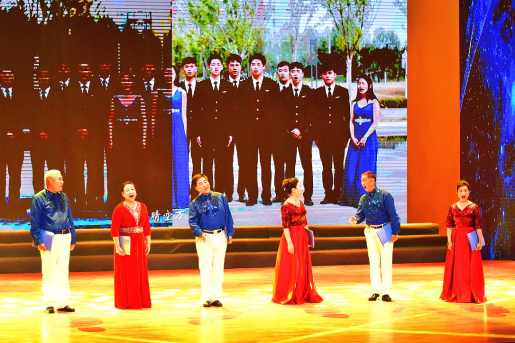 我校李丽琴、李力群、王晓梅、丁莹、马岐、陈志英等6位老师进行了题为《空天报国 敢为人先》的诗朗诵表演。朗诵回顾了1952年抗美援朝期间,北航为国而生、与国同行,培养一代代“红色工程师”的建校历史,赞颂了北航人始终服务国家需求,传承弘扬“空天报国、敢为人先”精神品格,在科技创新和培养德智体美劳全面发展的社会主义建设者、接班人方面创造的一项又一项卓越成绩,展示了在新时代新征程建设中,北航人为党育人、为国育才,培养一流人才、做出一流贡献的决心与追求。