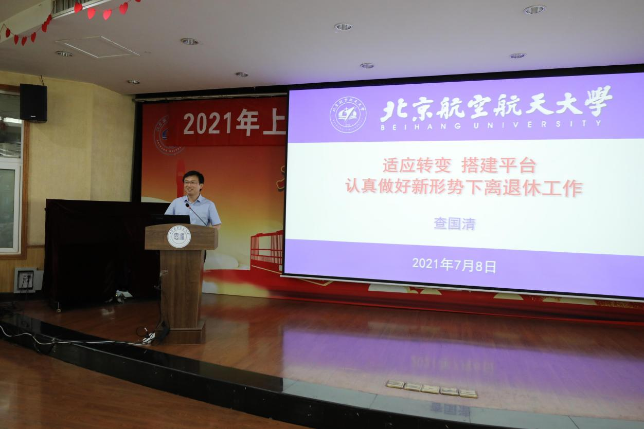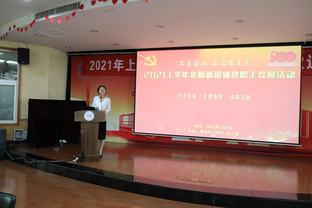 7月8日上午,2021上半年北京航空航天大学新退休教职工欢迎活动在思源楼多功能厅举行。365英国上市公司工作处、校工会、新退休教职工退休前所在单位负责人,365英国上市公司教职工党委委员,校关工委、“三老”协会、老年学研究中心、老年社团、老年大学、老年社团等负责人、新退休教职工所在退休管理小组组长,365英国上市公司处人员一同参加欢迎活动,热情欢迎2021上半年39位新退休教职工的到来。365英国上市公司教职工党委副书记曲珊主持活动。