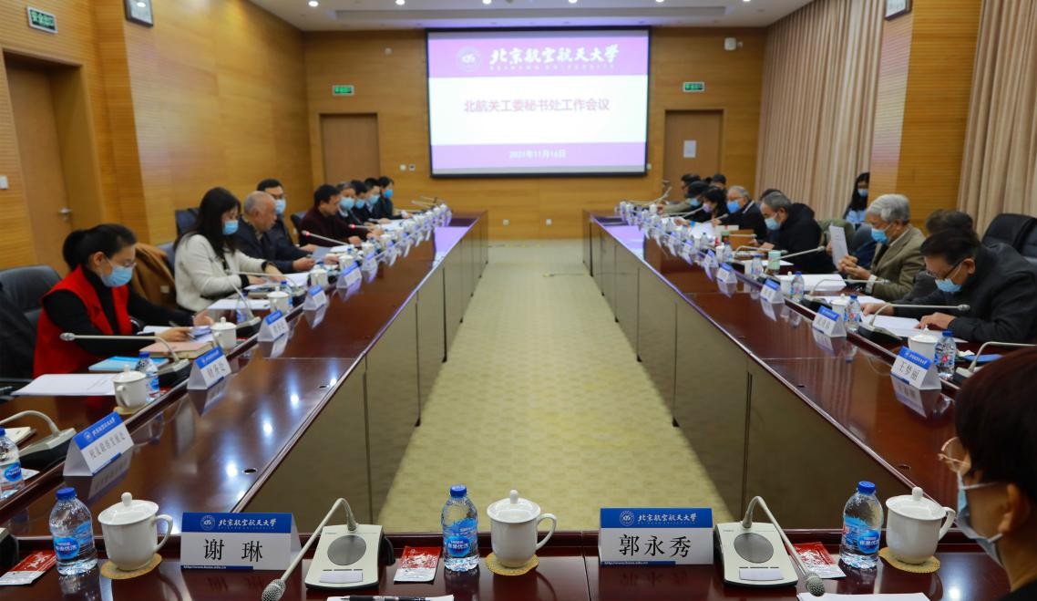 2021年11月16日,北航关工委秘书处工作会议在新主楼第八会议室召开。校党委副书记、关工委常务副主任程波,副主任曾妙南,来自学生工作部、研究生工作部、校团委等全体委员单位成员、老同志委员共30余人出席会议。关工委秘书长查国清主持了会议。
