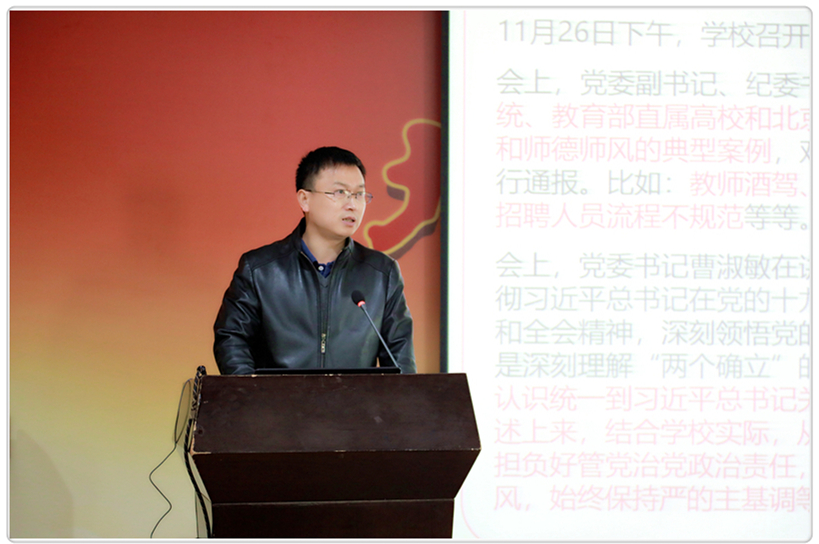 在警示教育学习部分,查国清传达了学校警示教育大会精神,结合近年来部分党员干部违纪违法的典型案例,深刻分析了党风廉政建设中易出现的问题类型,对365英国上市公司党员干部严于律己、廉政办公等方面提出了要求。