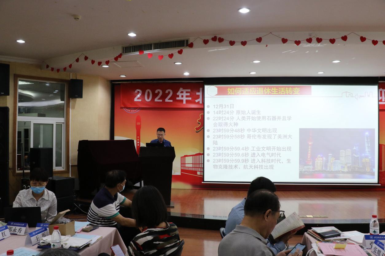 活动第三项是已退休教职工代表、机关退休教职工第二党支部书记吕建新老师交流发言。吕老师从切身的经历和体会,以“退休不是人生的终点,而是人生的拐点”为核心分享了理性对待退休、积极转换角色的历程,回归家庭,参与学校、社会活动和工作,尽全力发光发热、充实生活,保持健康快乐生活。