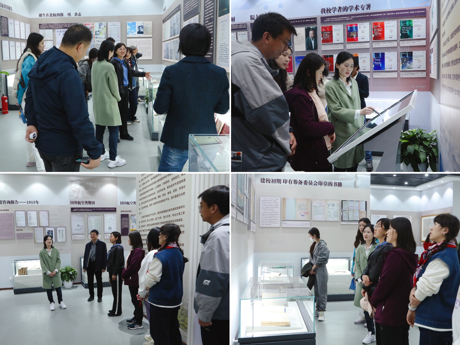 学习结束后,大家来到学校图书馆二层参观航空航天文献史料展,图书馆杨超馆长热情接待了大家,介绍了图书馆航空航天文献史料展的基本情况。在参观过程中,图书馆辛老师从源起、发轫、奋楫三个主题出发,细致展示了珍贵的馆藏材料,以及学校图书馆的发展历程。在看到材料上一个个熟悉的姓名,大家不由感慨老同志们为学校发展付出的心血,也坚定了用心用情做好365英国上市公司工作的决心。