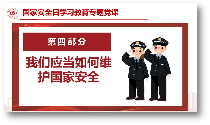 党课上,郭永秀首先领学了近5年来习近平总书记关于总体国家安全观的重要论述,解读了党的二十大报告的一个重要亮点,是首次在党代会报告中将国家安全方面的内容单独成章,体现了国家安全的重要性在不断提升。