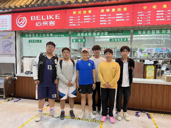 教授的大一学生和屈晓升老师在食堂开心合影
