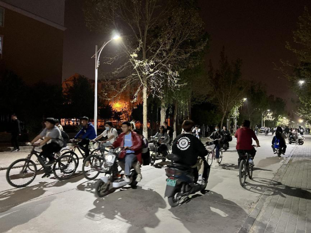晚上十点多,塔里木大学校园内下课的学生