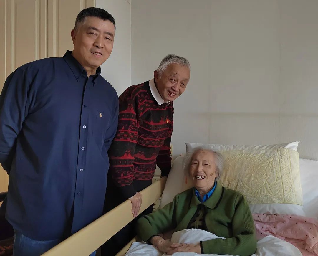最后我们来到保利静和养老机构看望苏成章老师和他的夫人王老师。苏老师将近90岁高龄,而王老师已逾90岁。两位老师谈笑风生,相处和谐,心情非常愉快。苏老师在养老院里非常活跃,经常组织唱歌,还自己作词作曲,生活充实多彩。两位老师告诉我们,王老师的身体一直不太好,有多种疾病。但是他们的儿子非常孝顺,天天都来看望,还自学中医技术,来养老院给王老师按摩、行针和艾灸,令老两口倍感欣慰。看到两位老师精神矍铄,心态乐观,老有所依,我们真心为他们感到高兴。