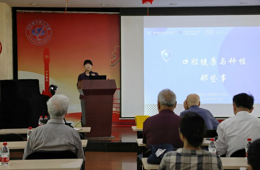口腔疾病如何预防治疗?种植牙需要注意那些事项?面对许多老同志心中的疑问,6月12日下午,思源楼二层多功能厅,北航校医院口腔科主任冯培明受邀走进思源讲堂,带来“聊聊口腔健康与种植牙”专题讲座,帮助老同志们正确面对口腔健康问题。