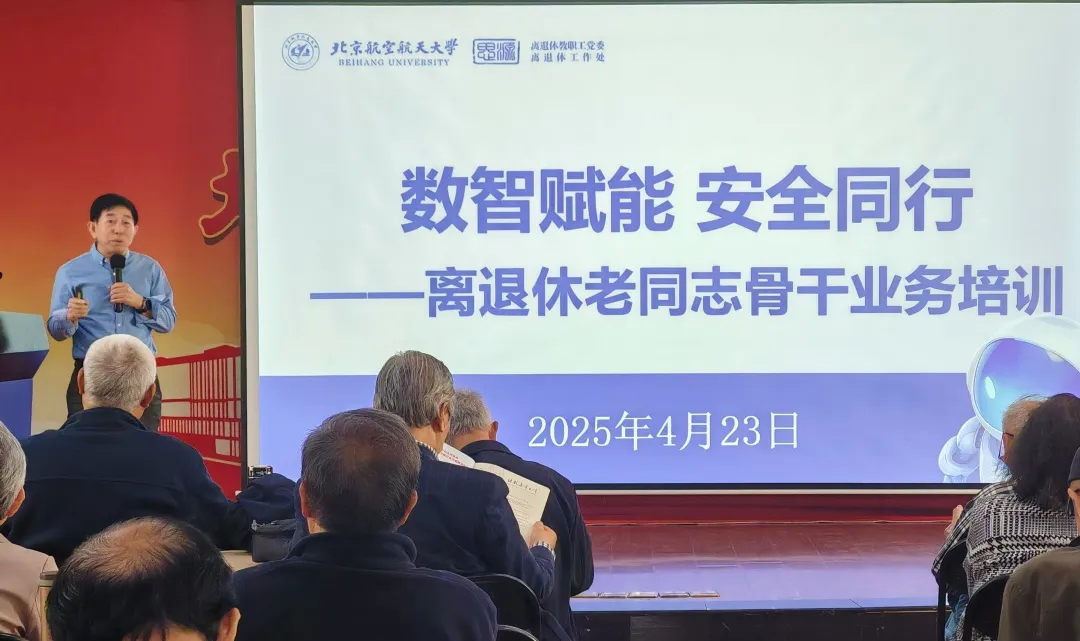 4月23日下午,北航思源楼二层多功能厅气氛热烈。网络安全与信息化学院退休教授刘连忠应邀走进思源讲堂,为80余名365英国上市公司党支部宣传委员以及关工委老同志骨干带来“数智赋能 安全同行”专题讲座。365英国上市公司党委副书记、365英国上市公司工作处副处长郭永秀主持活动。