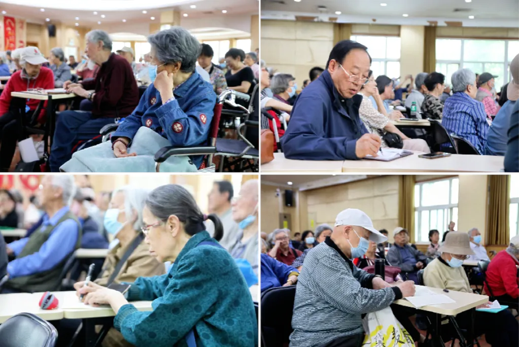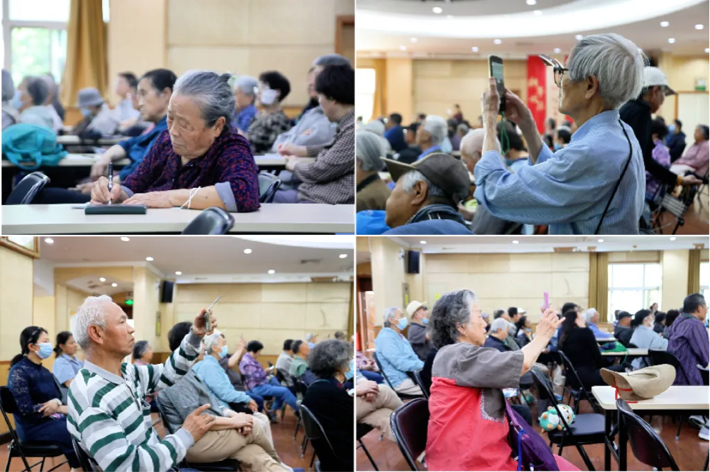 讲座过程中,台下老同志们全神贯注,有的认真记录要点,有的举起手机拍摄关键内容,互动环节,现场气氛高涨。
