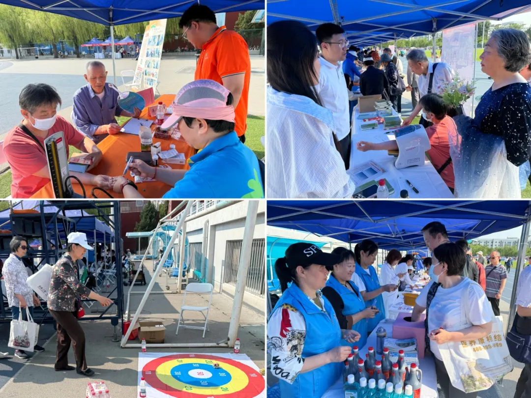 活动还未正式开始,八家机构的展台前已有老同志纷至沓来,或细致咨询居家照护细则,或比对养老社区条件特色,或体验智慧养老设备。现场既有血压、血糖、动脉硬化等健康检测服务,也有口腔义诊服务,还设置了趣味抽奖和丢沙包等互动游戏。