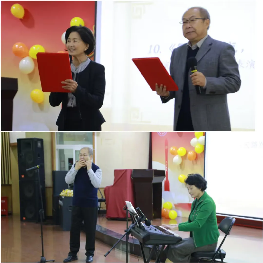 老教师们更是风采依旧:张华与周援老师的电子琴与口琴合奏《天路》《贝加尔湖畔》余音绕梁;91岁的孙世长老师朗诵《满江红·狼牙山五壮士》气贯长虹;90岁的王幼复老师表演的太极拳刚柔并济,震撼全场;韩丽莉老师的京剧清唱韵味悠长;吴超英与张华老师情真意切地朗诵《银发逐光,薪火向苍穹》,那退而不休、薪火相传的北航情怀,深深触动了每个人的心弦。