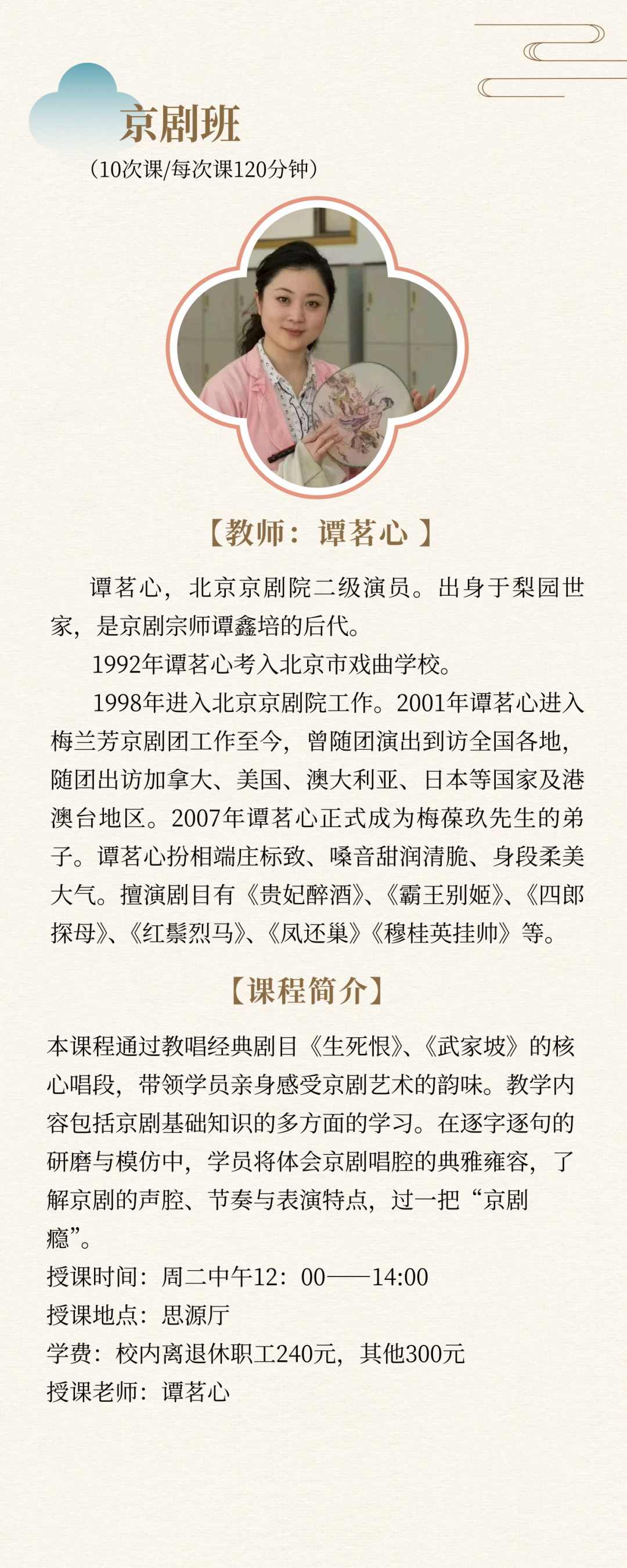 荷花池畔,思源楼内,师资雄厚,费用低廉。北航老年大学倾情推出春季精品课程11门,涵盖文化修养、艺术鉴赏、中医养生等多元领域。课堂将组织形式多样的学习与实践,助力老师们在交流中丰富生活。