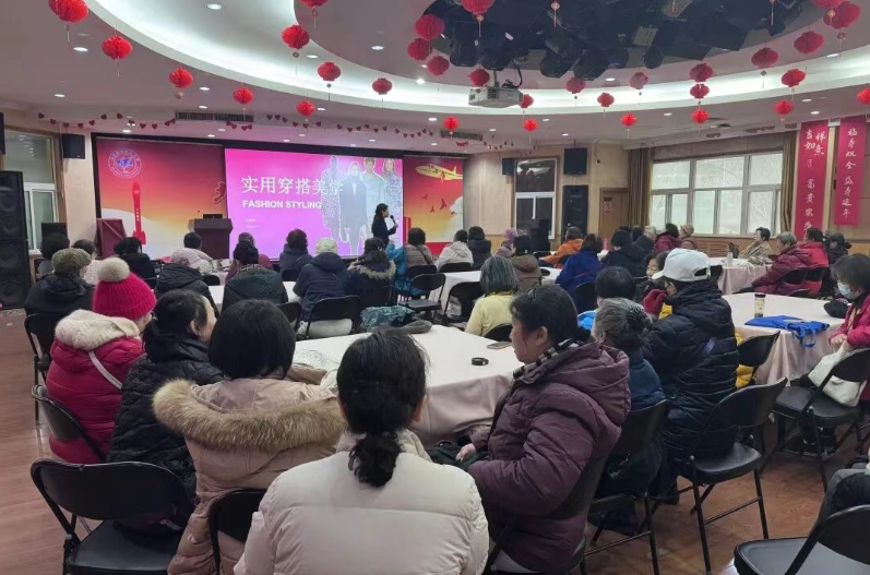 随后,北京服装学院教师王媛媛带来精彩的穿搭美学讲座,从体型识别、色彩搭配到服饰选择,拆解实用又易学的变美技巧。老同志们现场互动试搭,交流欣赏。大家笑着说:“原来穿搭还有这么多学问!”“学会搭配,人也更精神、更有气质了。”两场暖心讲座既为老同志们的健康保驾护航,又点亮了晚年生活之美,让老师们在收获知识与快乐的同时,倍感学校的贴心关怀。